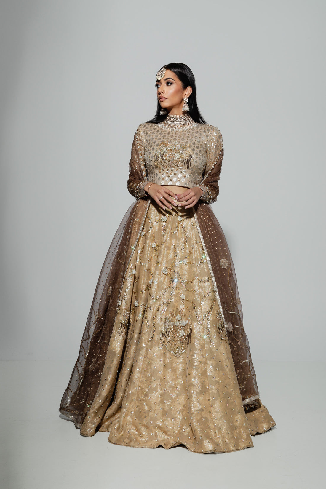 A mustard yellow bridal lehenga crafted with pure raw silk blouse and organza lehenga. It...